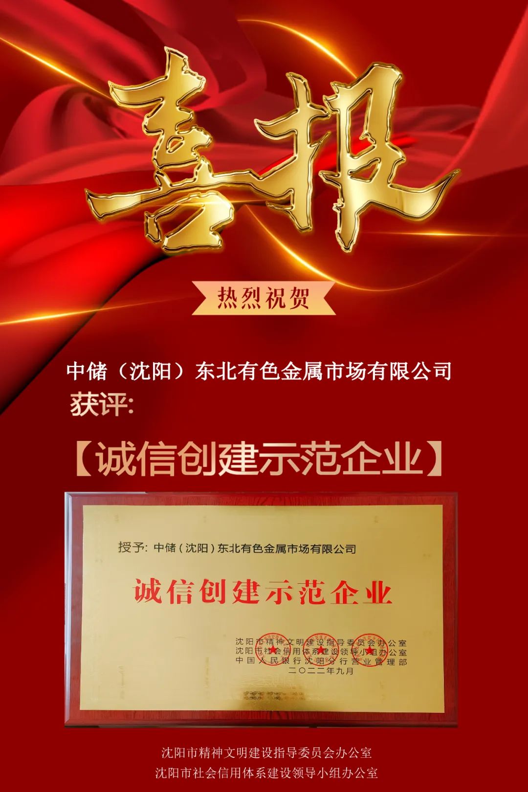 公司获评沈阳市诚信创建示范企业